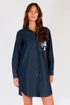 The Marseille Shirtdress is our take on an ageless oversized shirtdress. Featuring a flattering drop tail bottom hem and fitted through the shoulders & bust with loads of room through the waist & hips. New Denim look with embroidered palm on pocket elevates this must have staple.